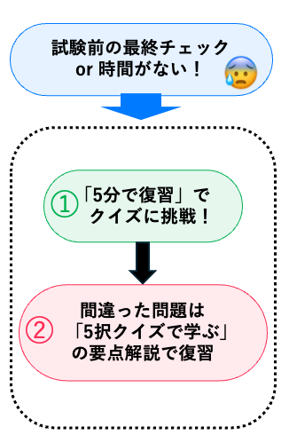 一問一答+5択で、短時間でも効率よく知識を定着。