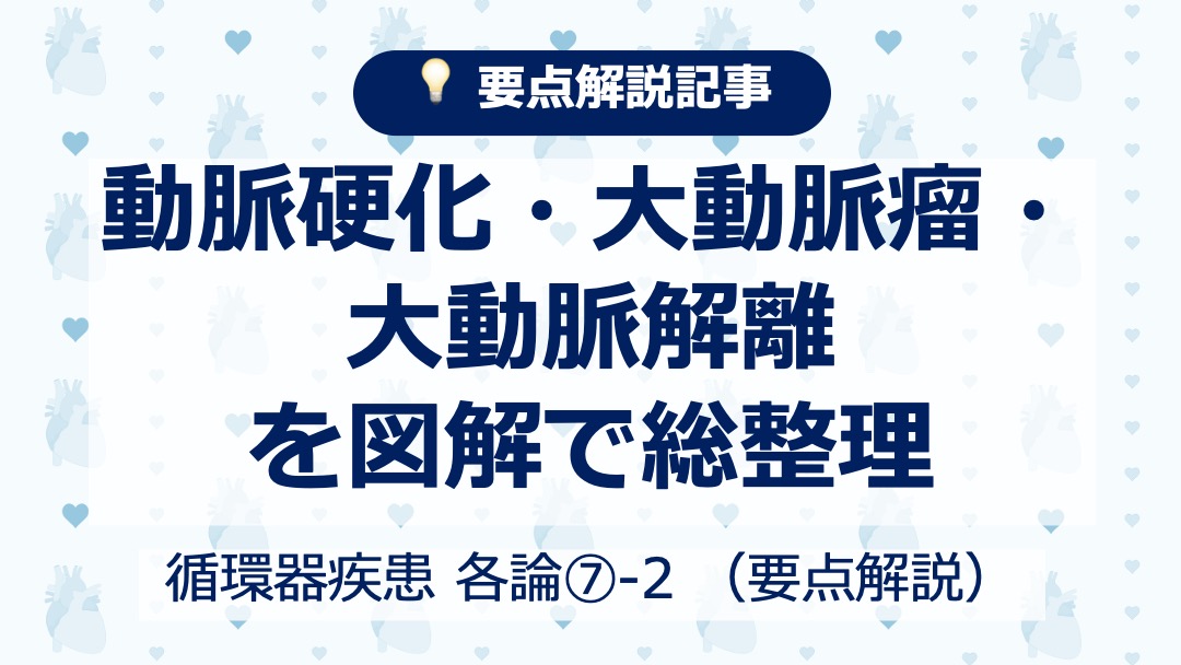- 本記事は、動脈硬化の基礎や大動脈瘤・大動脈解離についての要点解説記事です(※クイズは別記事)。