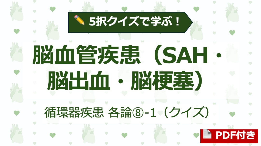 本記事は、「解いて覚える」をコンセプトにした脳血管疾患の5択クイズ記事です。