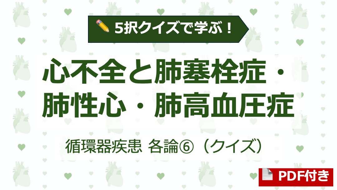 ✏️ 5択クイズに挑戦!心不全と肺塞栓症・肺高血圧症・肺性心