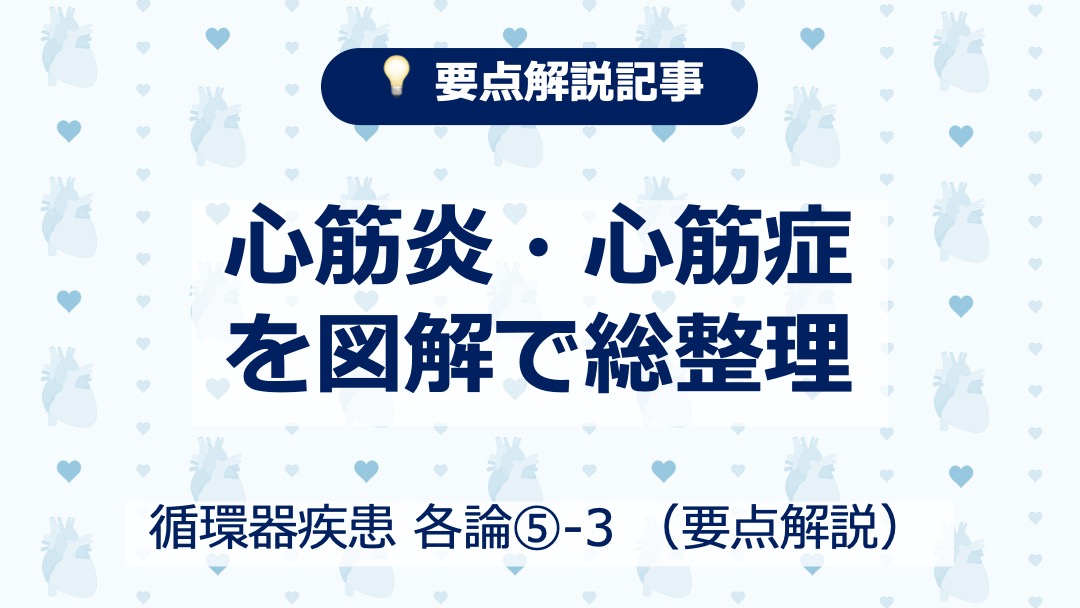 • 本記事は、心筋炎・心筋症 の要点を図解で整理した解説記事です(※5択クイズは別記事)。